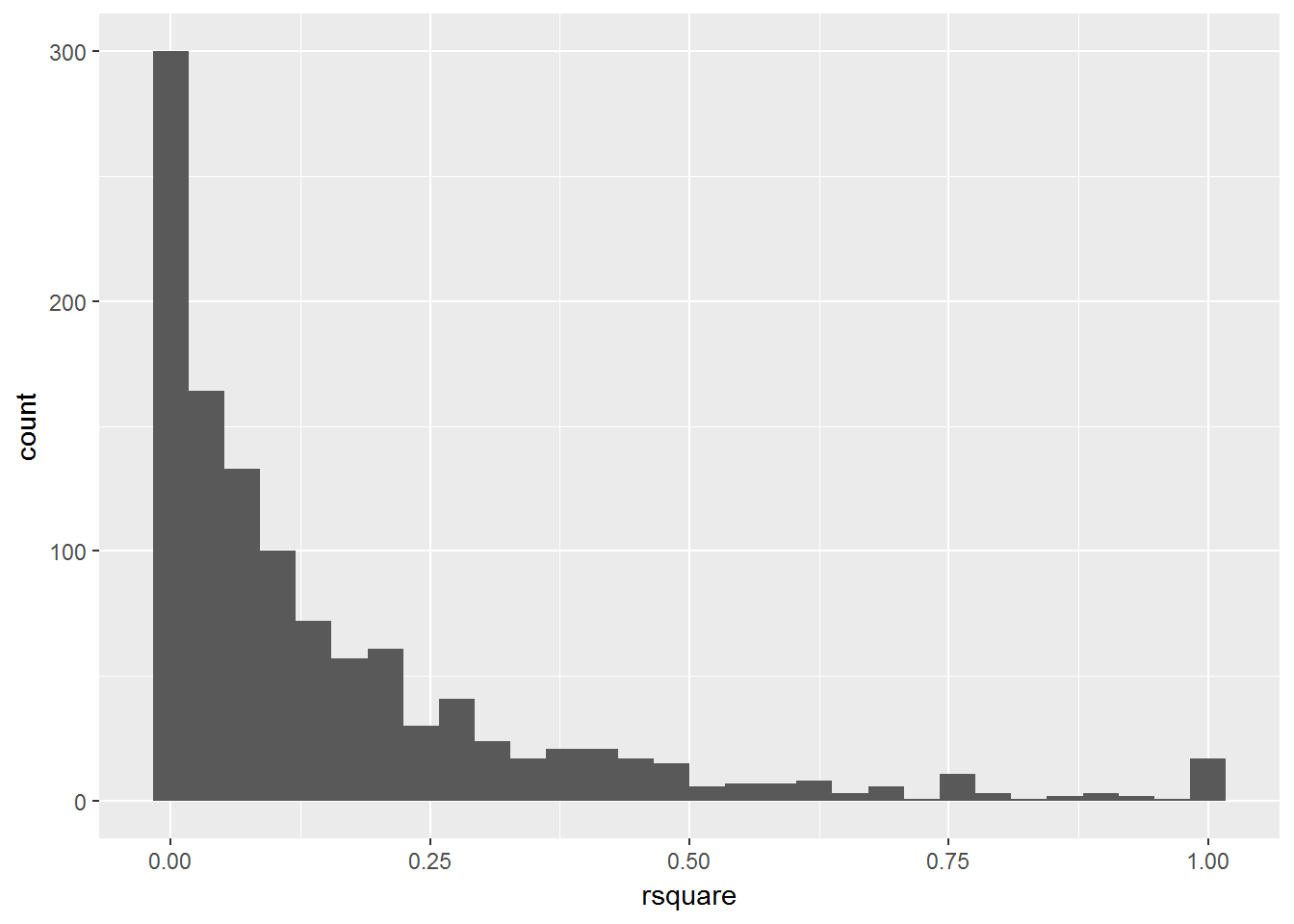 qplot(rsquare,data=bcoefs,geom="histogram")