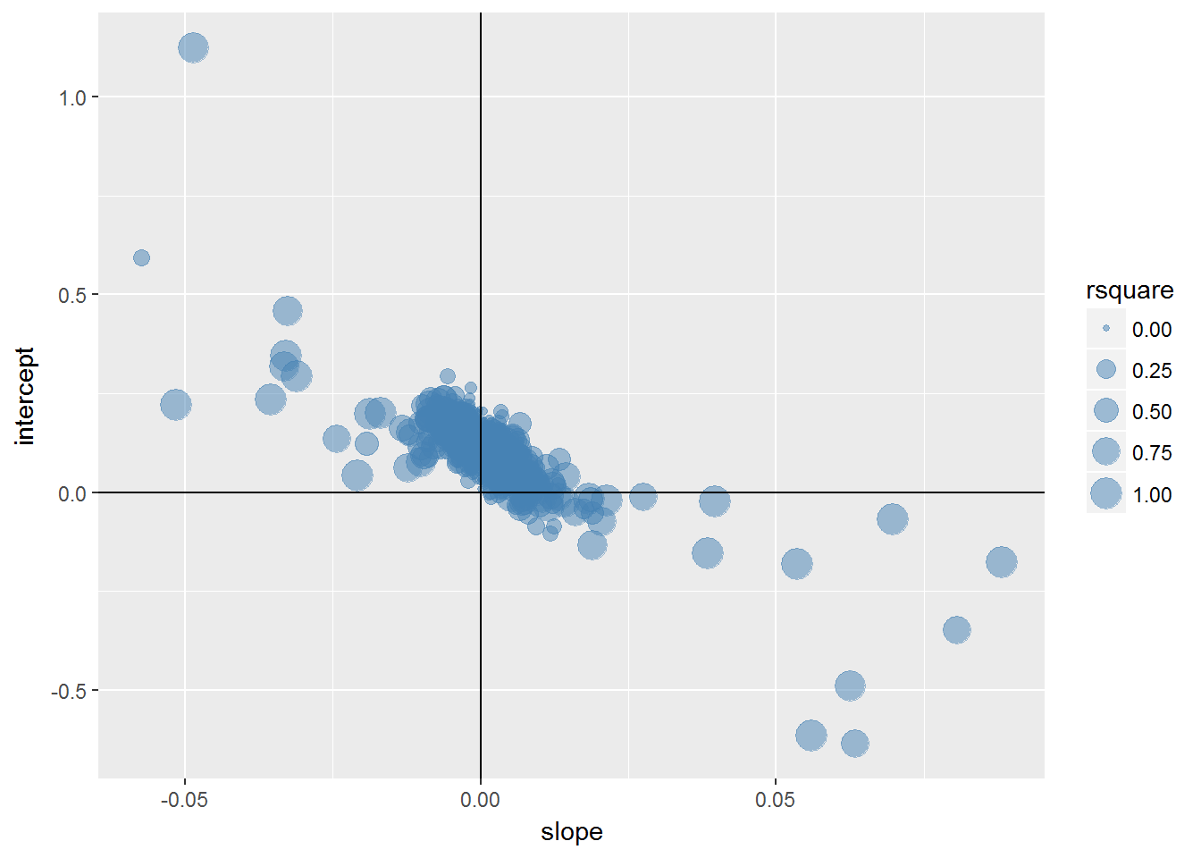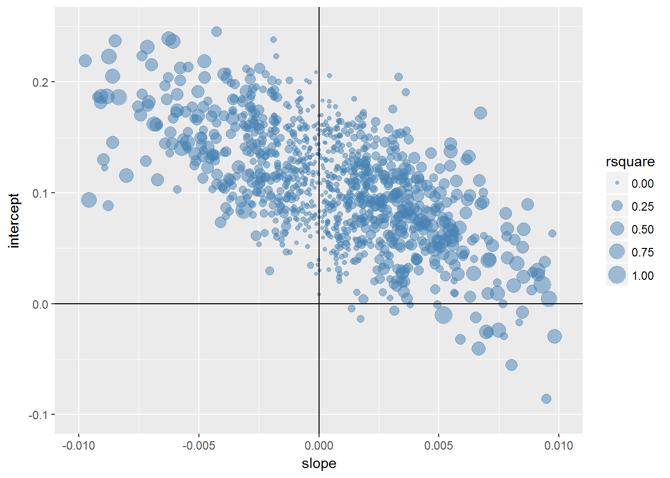 g <- ggplot(bcoefs,aes(slope,intercept))+