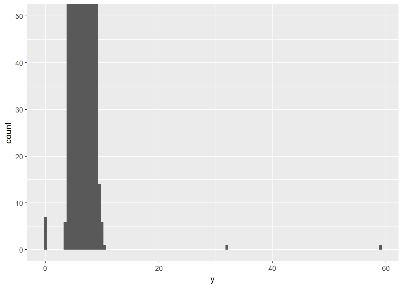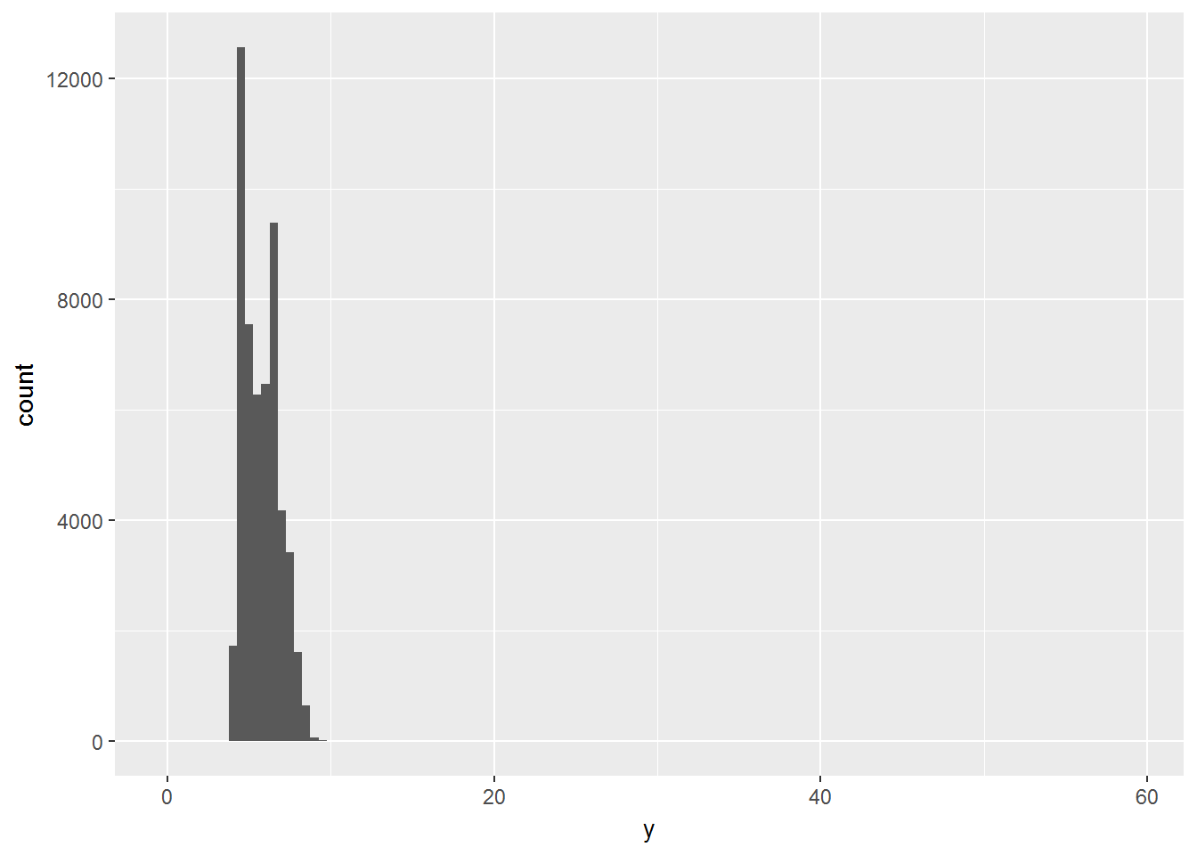geom_histogram(mapping = aes(x = y), binwidth = 0.5)