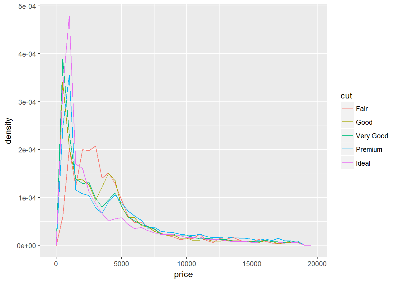ggplot(data = diamonds, mapping = aes(x = price, y = ..density..)) +