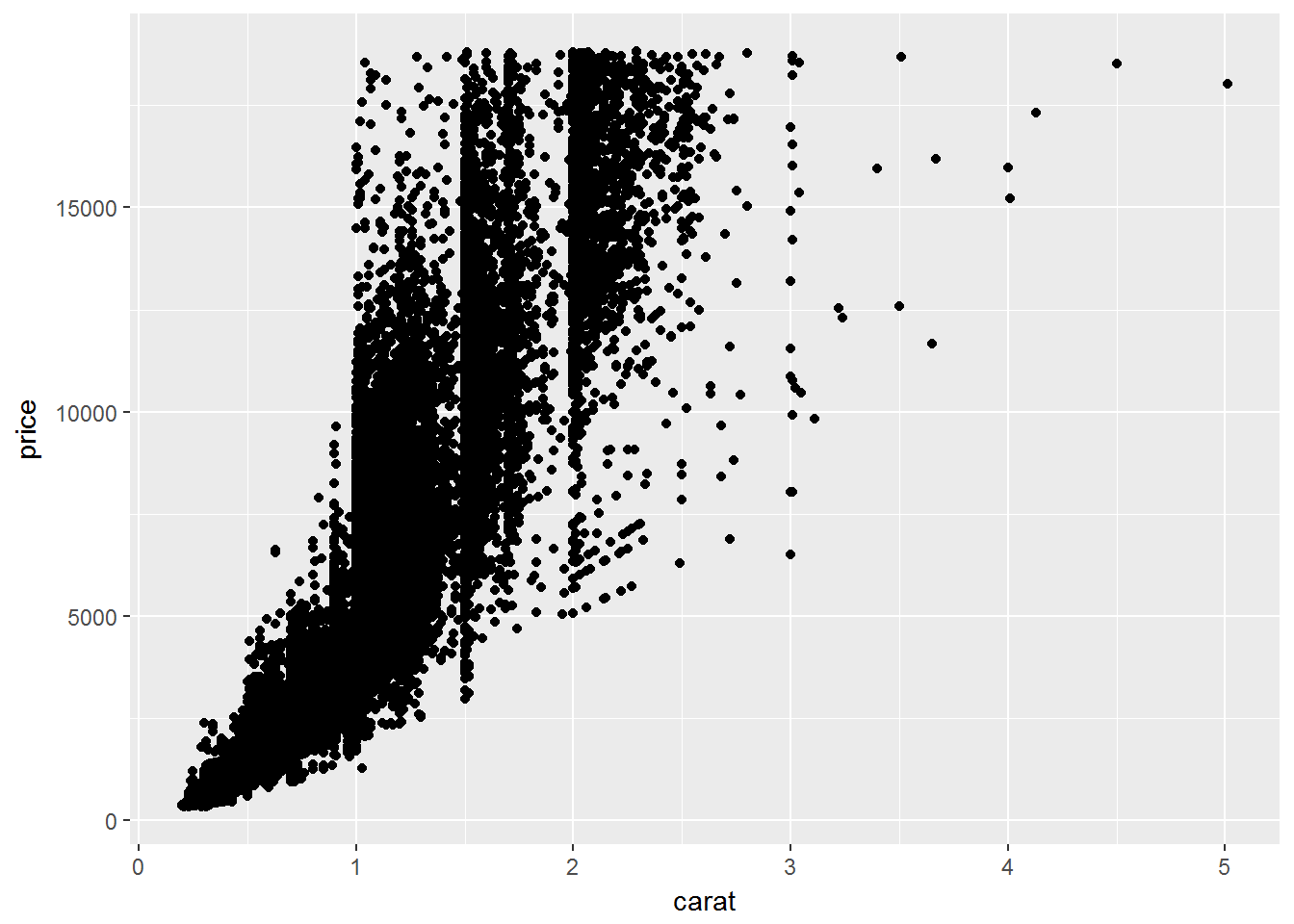 ggplot(data = smaller, mapping = aes(x = carat, y = price)) +