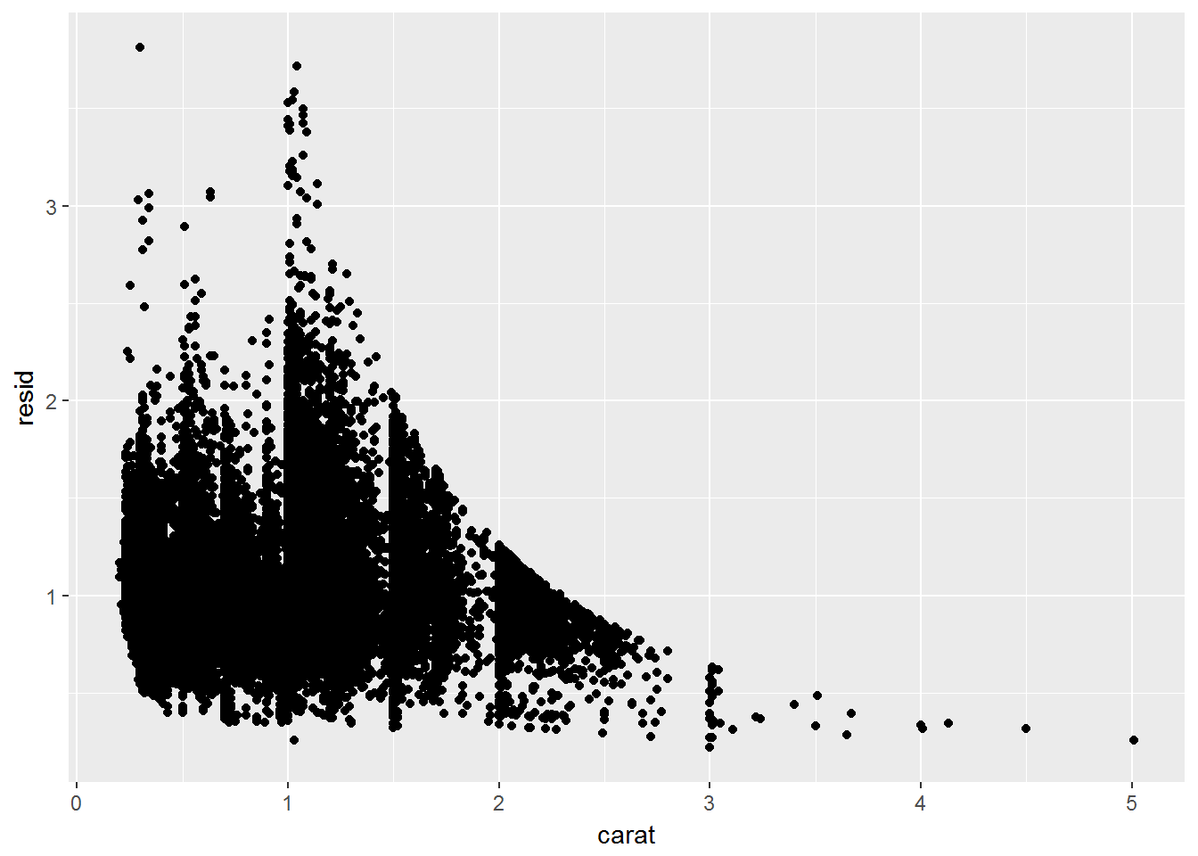 geom_point(mapping = aes(x = carat, y = resid))