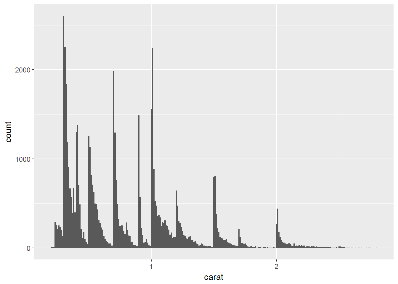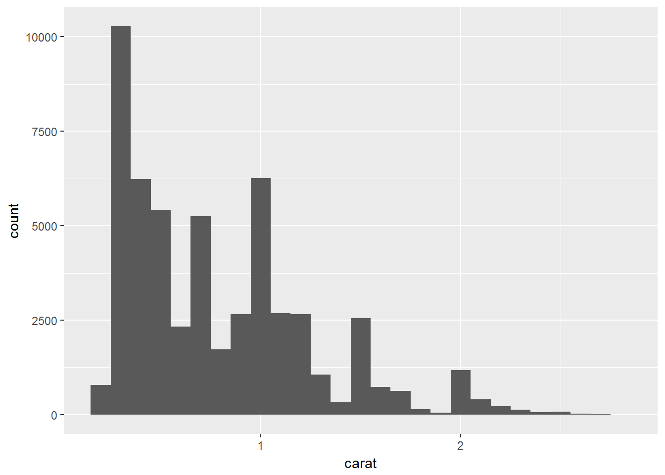 ggplot(data = smaller, mapping = aes(x = carat)) +
